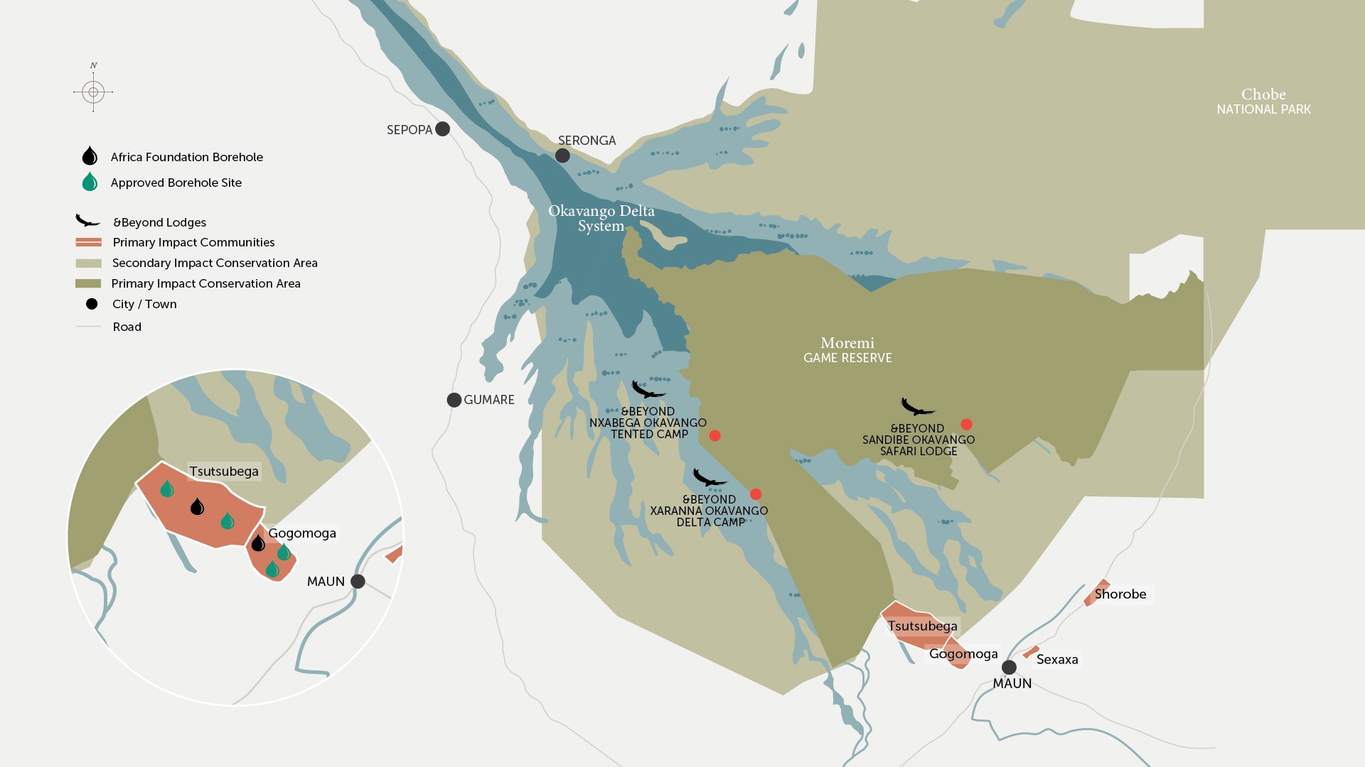 Africa Foundation has been active in Botswana since 2014, working in collaboration with the andBeyond Botswana team to support rural communities close to the world-famous Okavango Delta. Botswana is renowned for having one of the largest conservation land ratios in Africa, with 25% of the country set aside for its spectacular wilderness and wildlife areas. The Okavango Delta, a UNESCO World Heritage site and a major tourism drawcard. The Delta is home to Gogomoga and Tsutsubega, two isolated villages in which Africa Foundation is active. Africa Foundation is also active in Sexaxa, a small rural village in the Ngamiland District, 19kms north-east of Maun Airport.