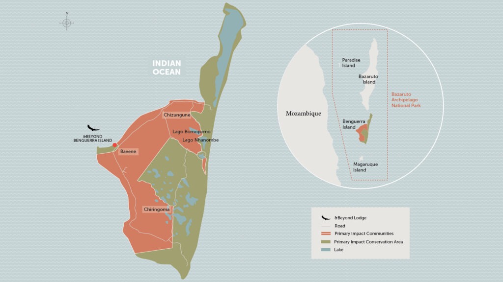 Africa Foundation has been active in the communities on this island since 2015, with the launch of the Oceans Without Borders programme in 2018. Benguerra Island is part of the Bazaruto Archipelago, 14km off the coast of Mozambique. The Archipelago consists of 6 islands that are collectively a National Park – due to their natural beauty and marine biodiversity. Benguerra Island is home to approx. 1,500 residents, who live a very simple life. Benguerra Island is a focal point for marine conservation activities as part of Oceans Without Borders.